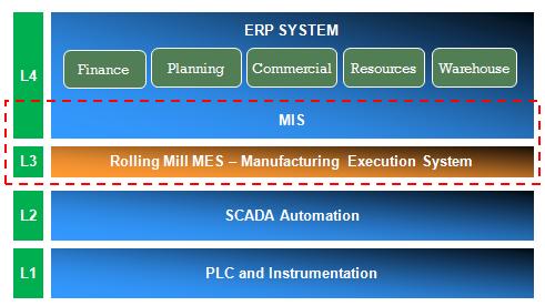 The MES is a not standalone system. It is categorized as Level 3 system in a typical enterprise information system. A well designed MES will be seamlessly integrated with the control systems (Level 1&2) and ERP system (Level 4) shown as below.